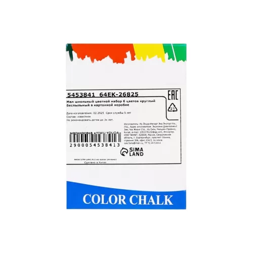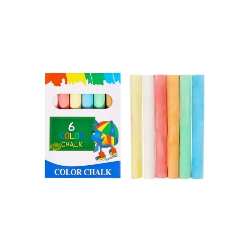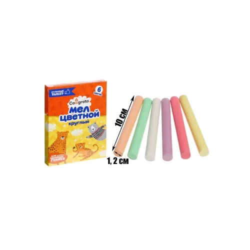 Мел школьный цветной, набор 6 цветов, круглый, беспыльный в картонной коробке, МИКС