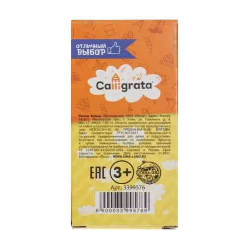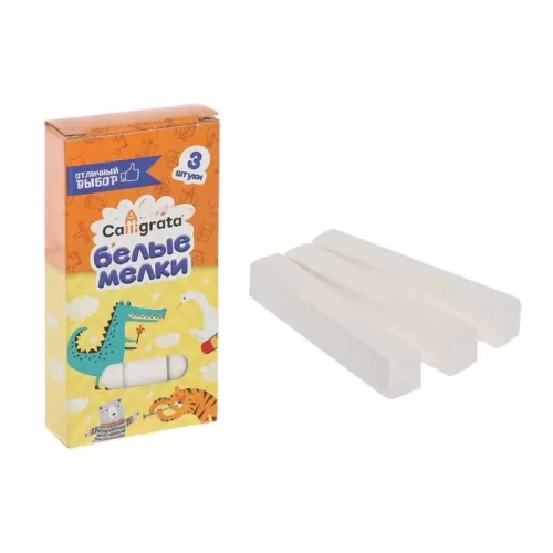 Мелки белые Calligrata, в наборе 3 штуки, квадратные