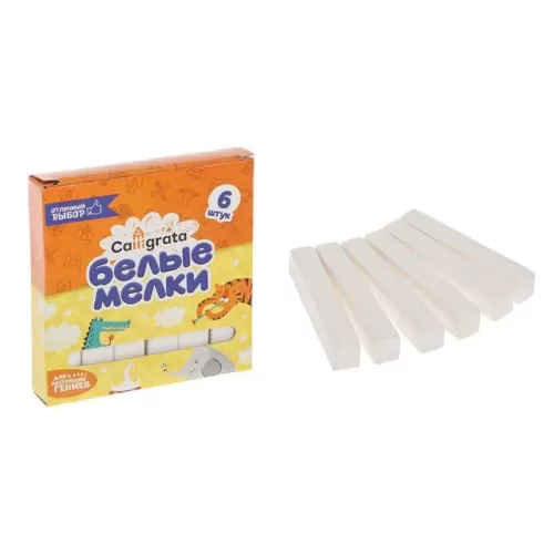 Мелки белые Calligrata, в наборе 6 штук, квадратные