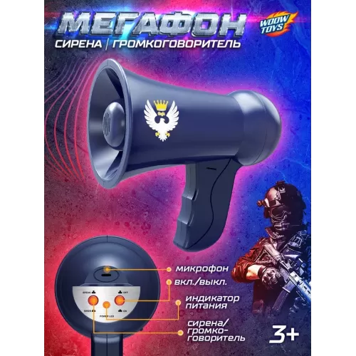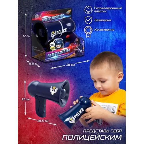 Мегафон «Полицейский», 2 режима: сирена, громкоговоритель, работает от батареек