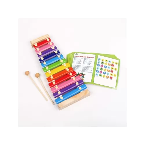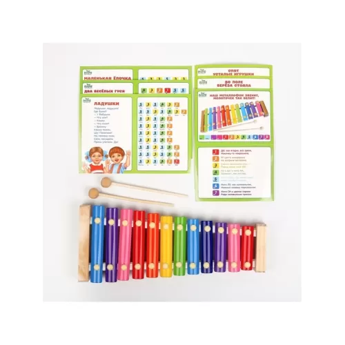 Металлофон музыкальная игрушка «Весёлые песни», 12 тонов, карточки с песнями
