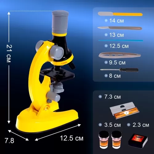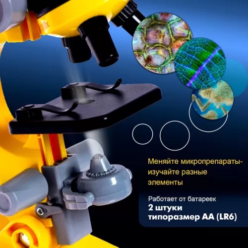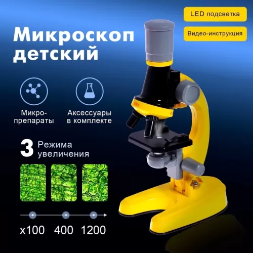 Микроскоп детский «Юный ботаник» кратность х100, х400, х1200, желтый, подсветка