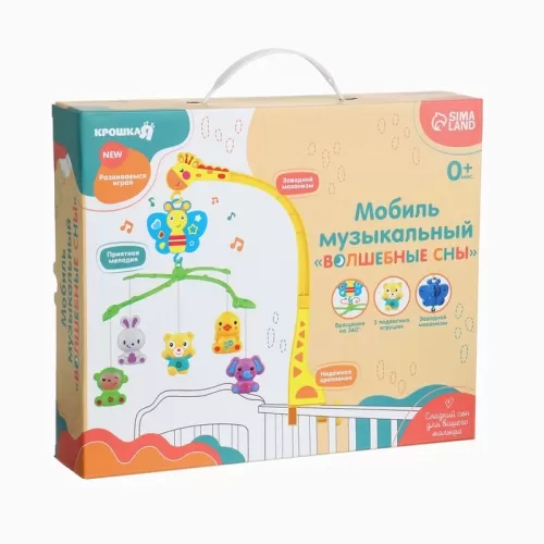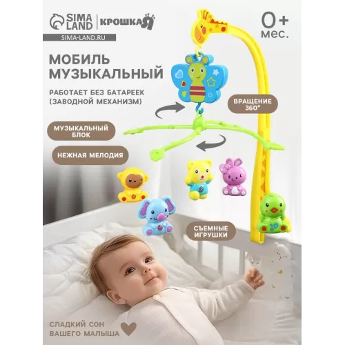 Мобиль музыкальный на кроватку «Бабочка. Малыш зоо», заводной, Крошка Я