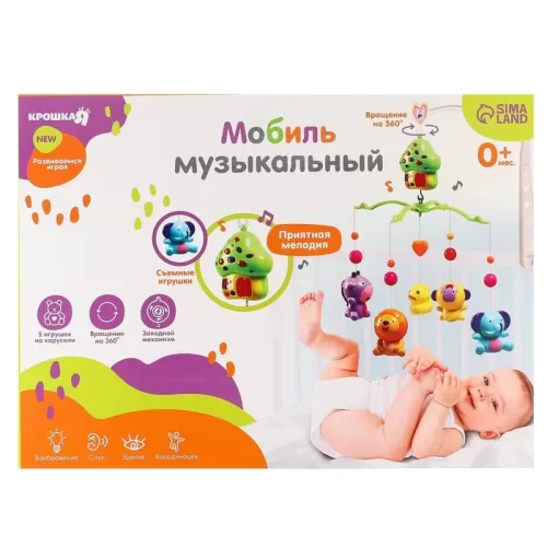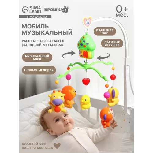 Мобиль музыкальный на кроватку «Домик. Джунгли», заводной