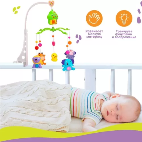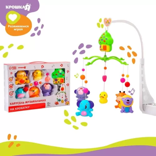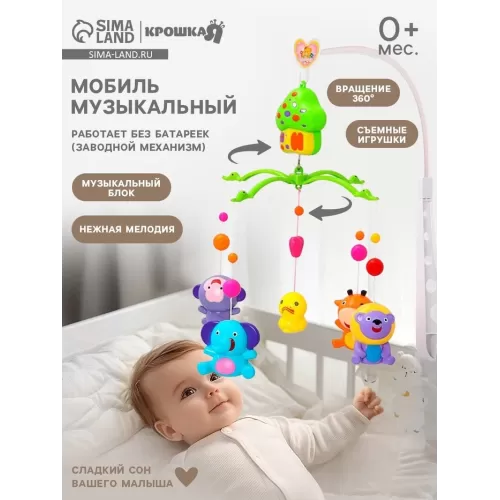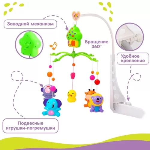 Мобиль музыкальный на кроватку «Домик. Джунгли №2», заводной