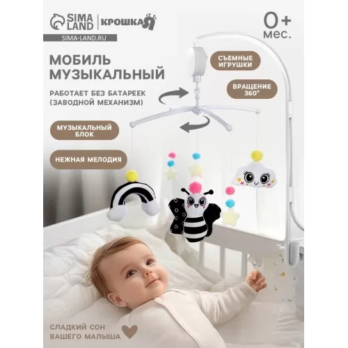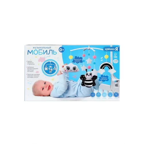 Мобиль музыкальный на кроватку «Весёлая пчёлка», звук, чёрный