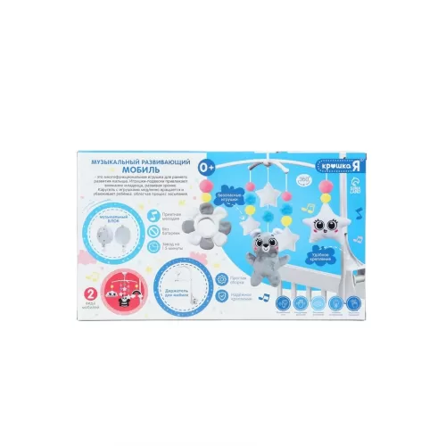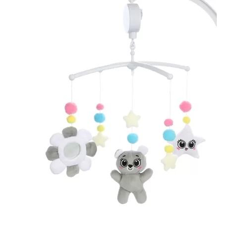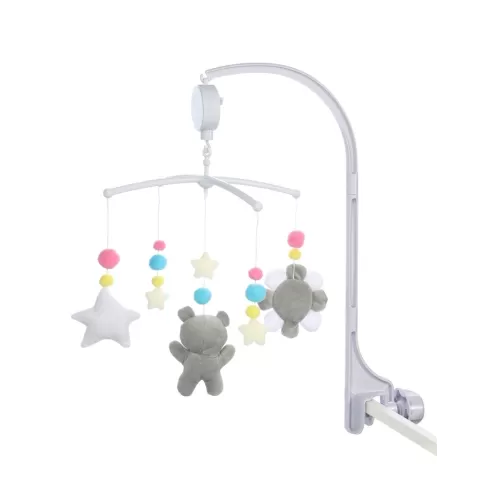 Мобиль музыкальный на кроватку «Забавный мишка», звук, серый