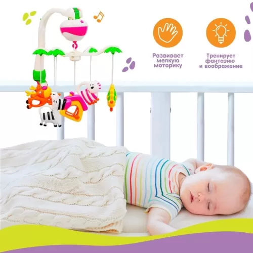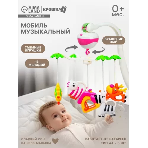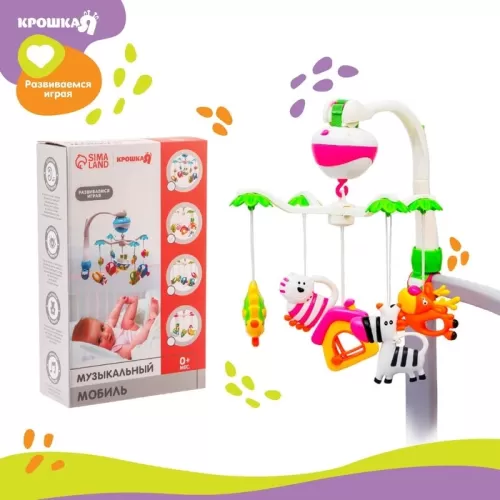 Мобиль музыкальный на кроватку «Зоопарк», на батарейках, Крошка Я