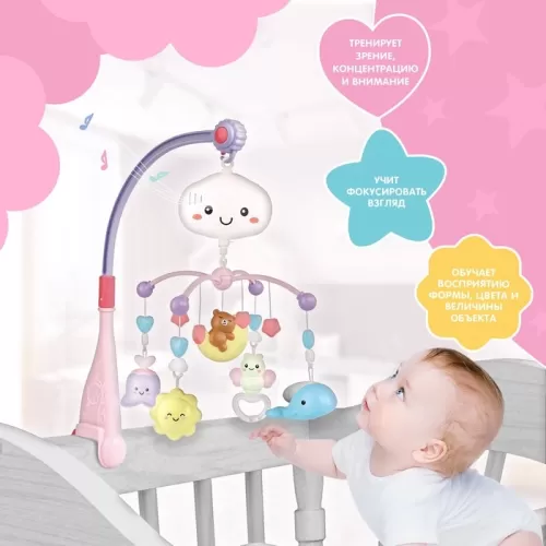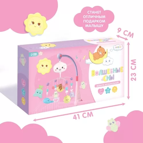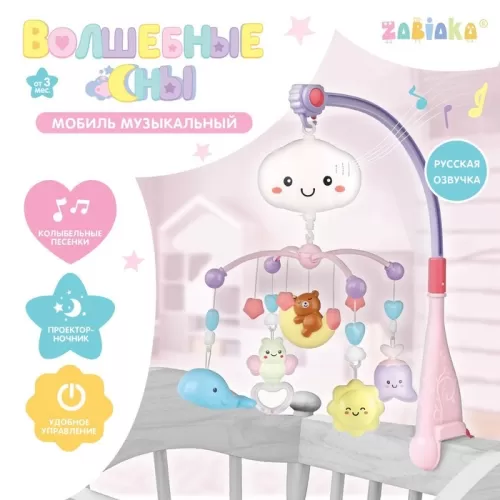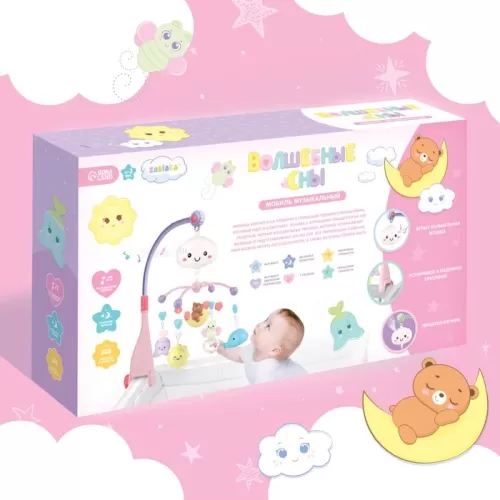 Мобиль музыкальный «Волшебные сны», звук, свет, цвет розовый