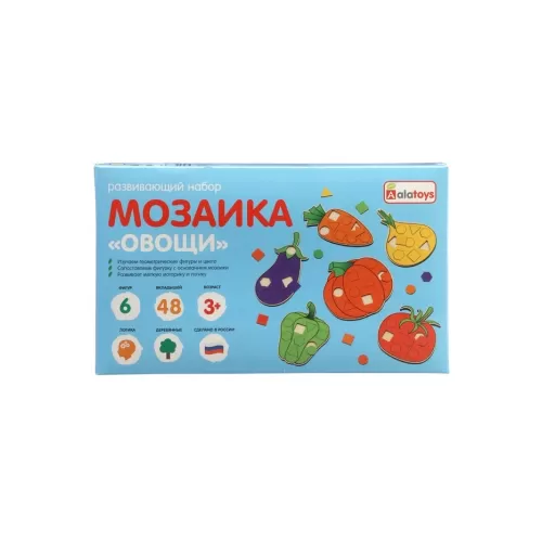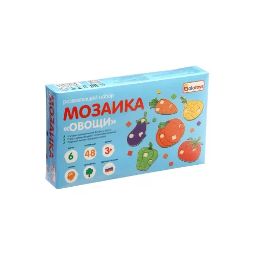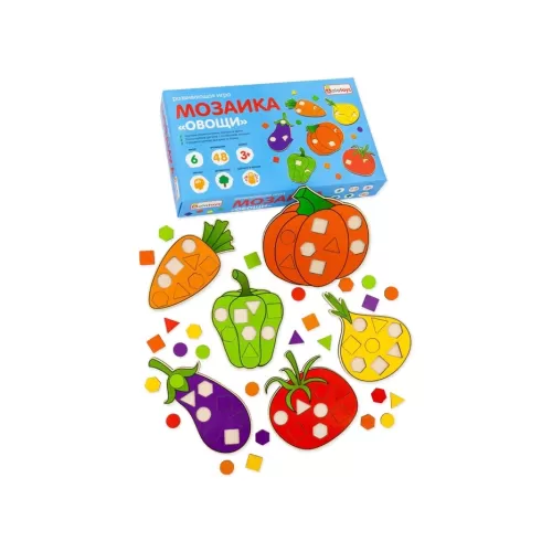 Мозаика «Овощи», 6 рамок, 48 геометрических вкладышей