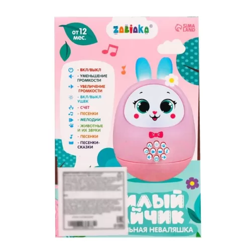 Музыкальная неваляшка «Милый зайчик», звук, свет, цвет розовый