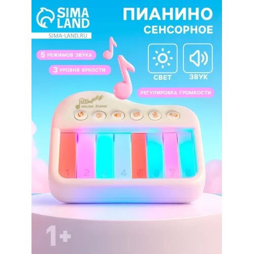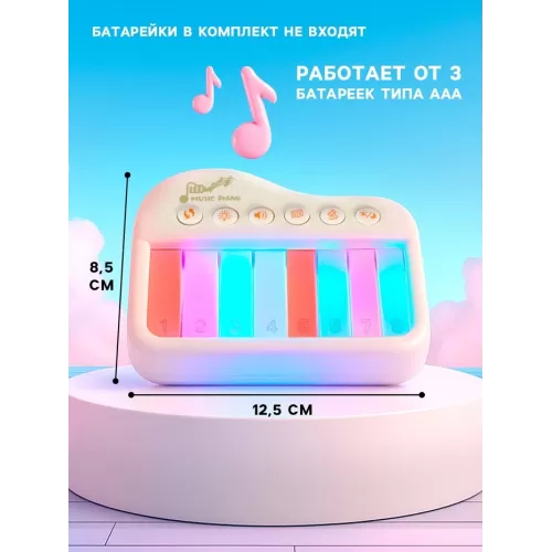 Музыкальное детское сенсорное пианино, звук, свет, белый