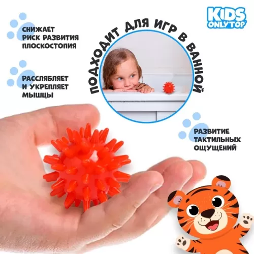 Мяч массажный ONLYTOP «Ёжик», d=4.5 см, красный