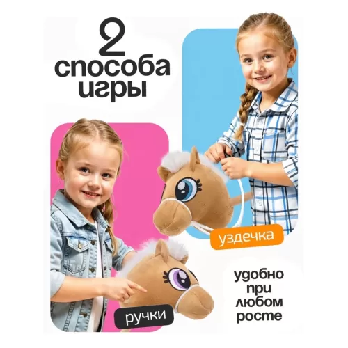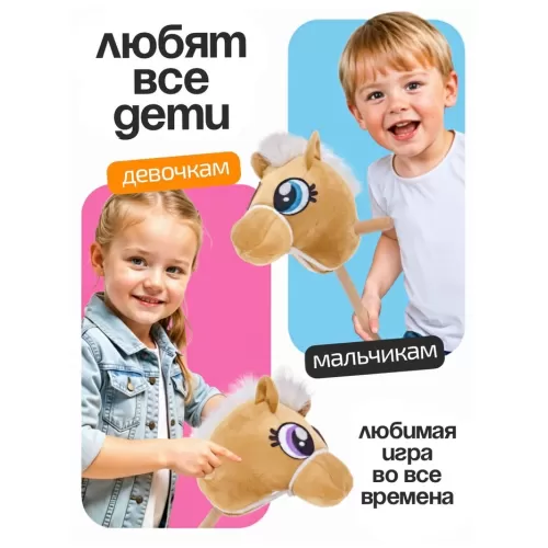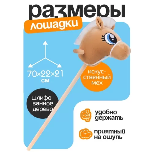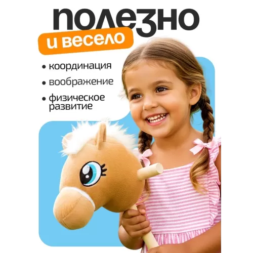 Мягкая игрушка «Конь-скакун», на палке, музыкальная, бежевая