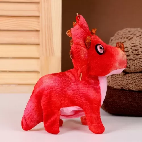 Мягкая музыкальная игрушка «Динозаврик», 16 см, цвет красный