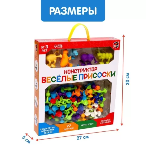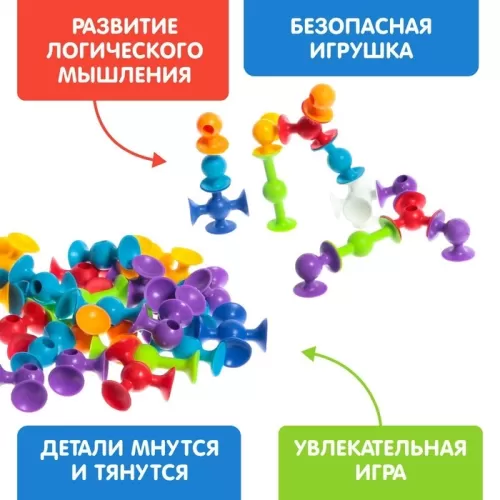 Мягкий конструктор детский «Весёлые присоски», 77 деталей