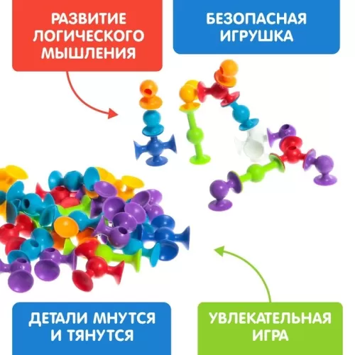 Мягкий конструктор детский «Весёлые присоски», 90 деталей