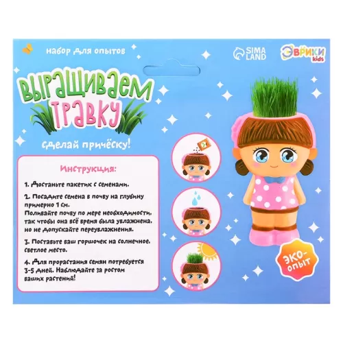 Набор для опытов «Весёлые прически, выращиваем травку», девочка