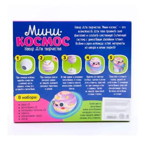 Набор для творчества «Мини-космос. Светящиеся планеты», с декоративными элементами, 9 шаров, 3+