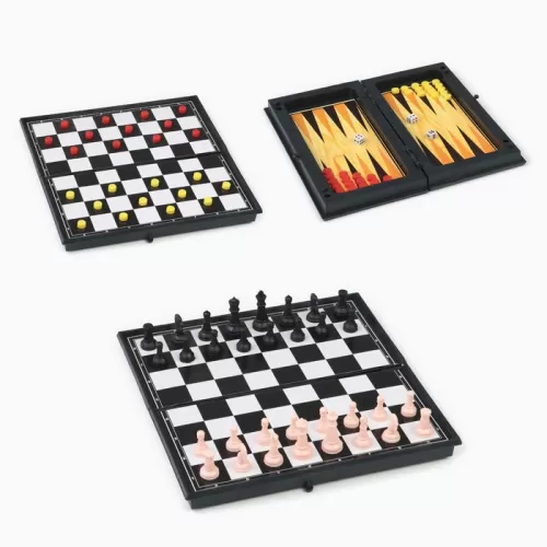 Набор классических игр 3 в 1 «Шахматы, шашки, нарды», компактный размер 19×19 см