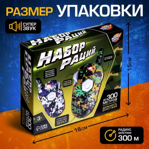 Набор раций «Отряд Альфа», без шума, дальность действия до 300 метров, работает от батареек