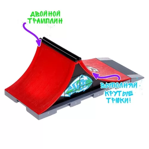 Набор скейт-парк «Трюк: прыжок», фингербайк с двойным трамплином