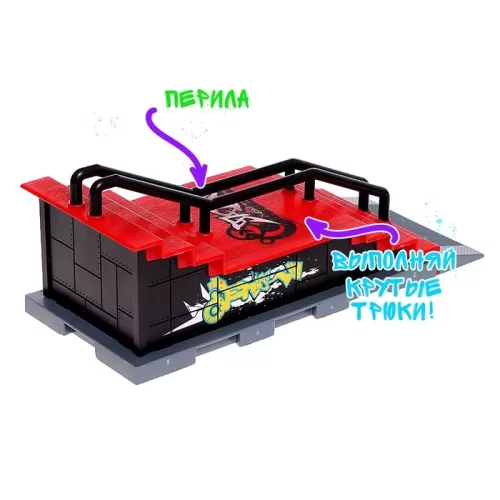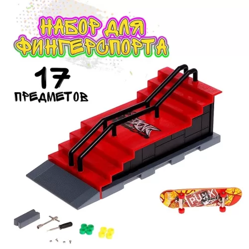 Набор скейт-парк «Трюк: прыжок с лестницы», фингерборд с перилами на лесенках