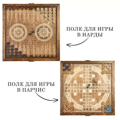 Нарды деревянные + парчис (лудо), настольная игра, 37×37 см