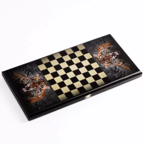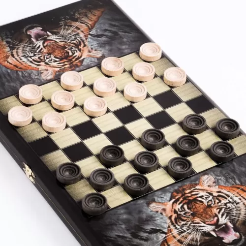 Нарды деревянные большие, настольная игра "Оскал тигра", 50 х 50 см, с шашками