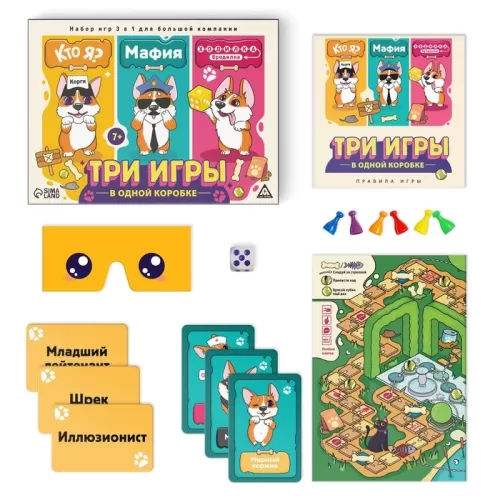 Настольная игра 3 в 1 «Кто я? Мафия. Ходилка-бродилка», 100 карт, 7+