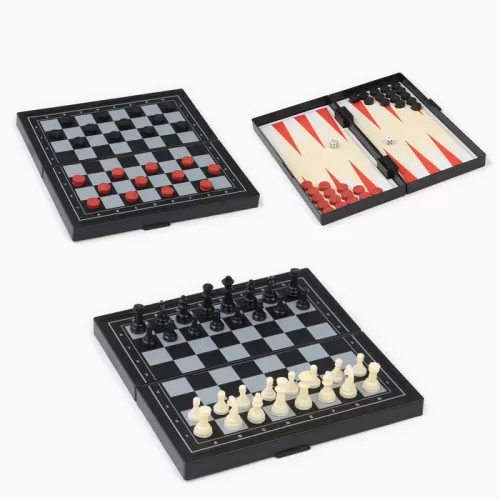 Настольная игра 3 в 1 «Зов»: нарды, шахматы, шашки, магнитная доска 19×19 см