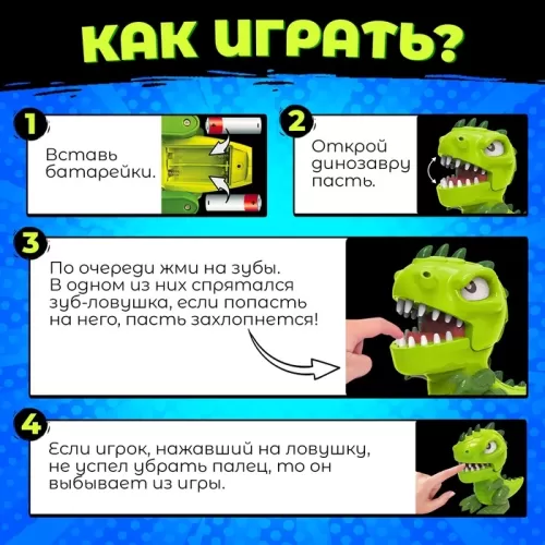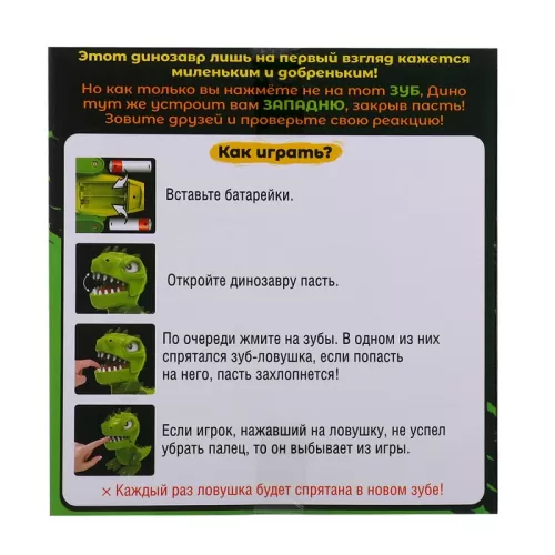 Настольная игра для детей на везение «Зубастый дино», от 2 игроков, 3+