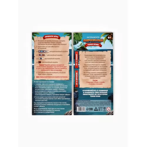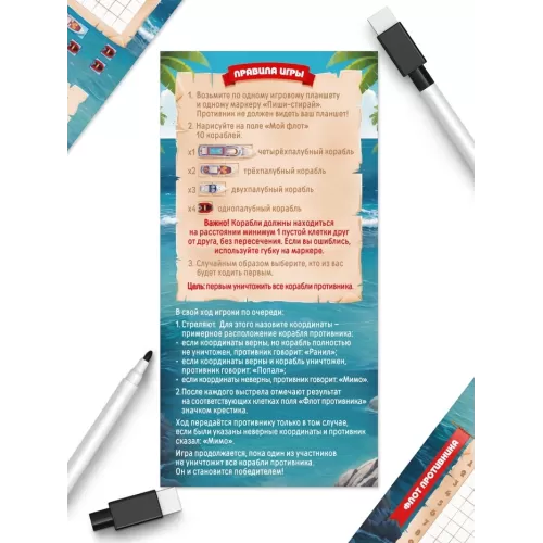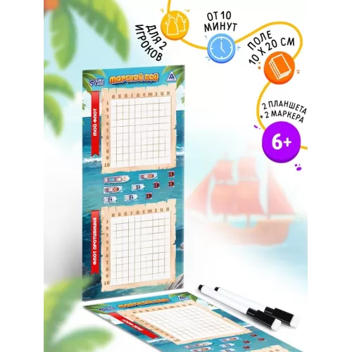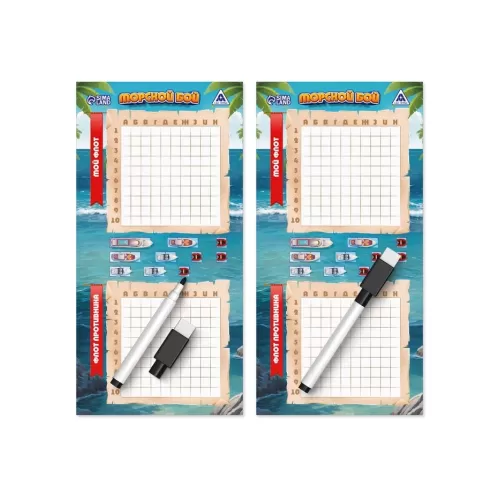 Настольная игра морской бой «Тихие воды», 2 стираемых маркера, 2 игровых поля, 6+