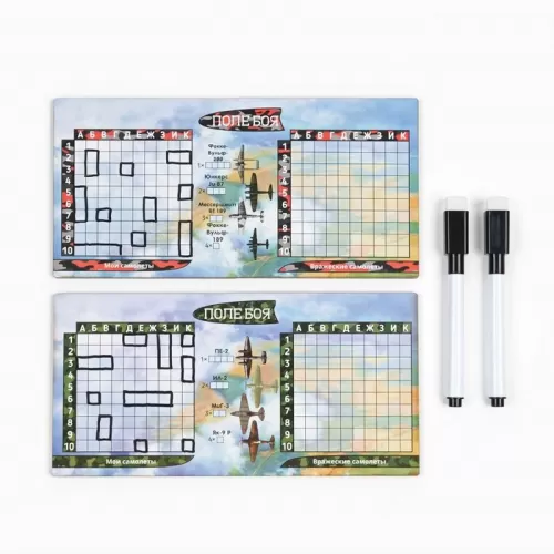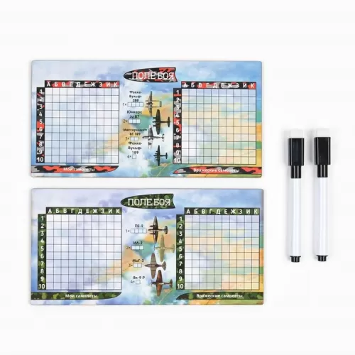 Настольная игра морской бой «Воздушный бой», 2 стираемых маркера, 2 деревянных поля
