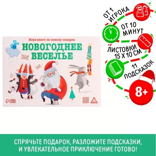 Новогодний квест по поиску подарка «Новый год: Веселье», 11 подсказок, письмо, 8+