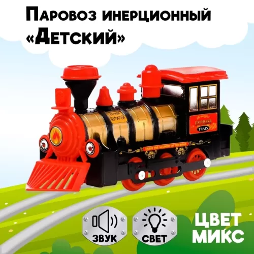 Паровоз инерционный «Детский», световые и звуковые эффекты, цвета МИКС