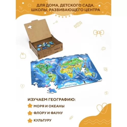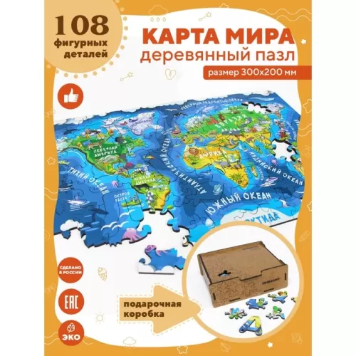 Пазл «Карта мира», премиум, 108 фигурных деталей