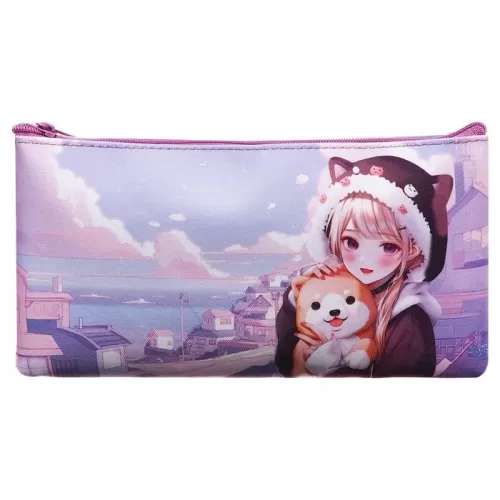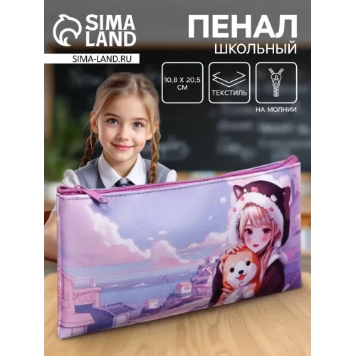 Пенал школьный, текстиль, плоский, 10.8×20.5 см «Аниме. друзья»