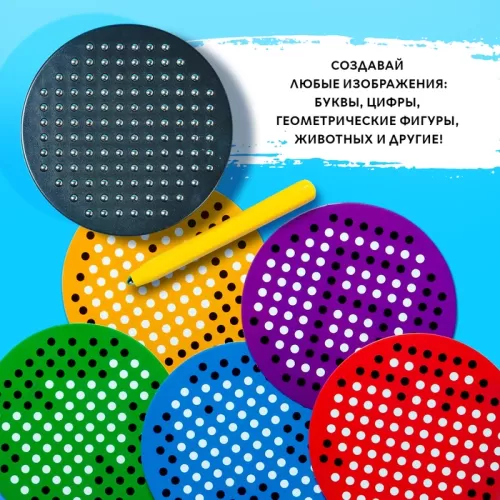 Планшет обучающий «Магнитное рисование», 120 отверстий, 5 карточек, цвет чёрный