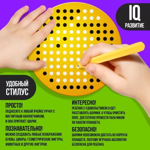 Планшет обучающий «Магнитное рисование», 120 отверстий, цвет жёлтый