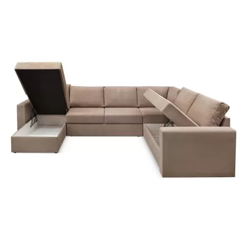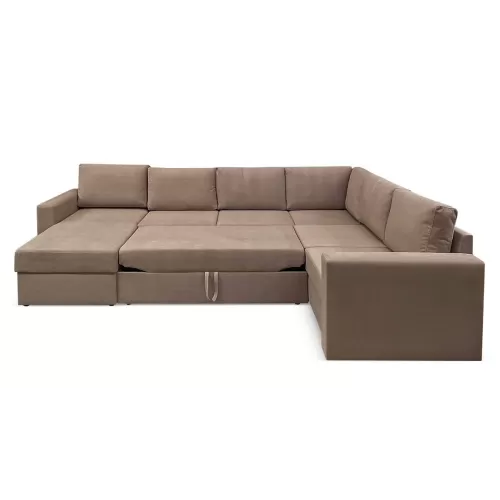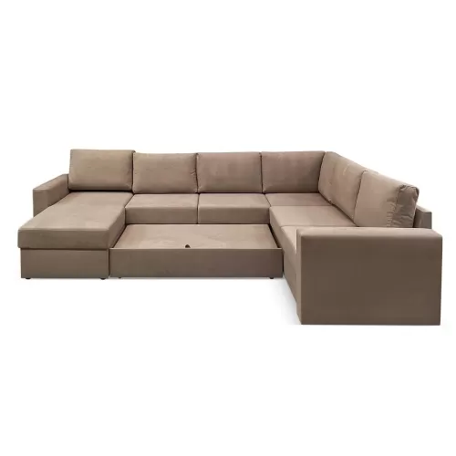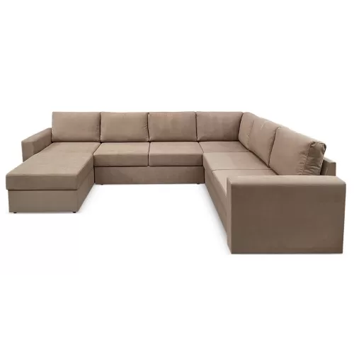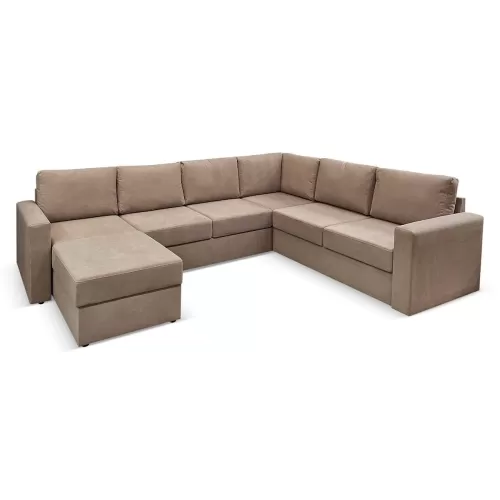 Большой диван для гостиной нужен для того, чтобы на нем поместились все. И всем было комфортно. Эта модель дивана надежна и выдерживает значительные нагрузки. В меру мягкий и упругий. И будет как новый даже спустя годы, без просиженных мест и ямок.
