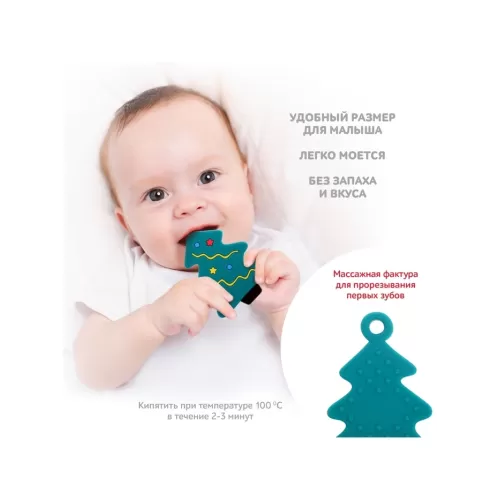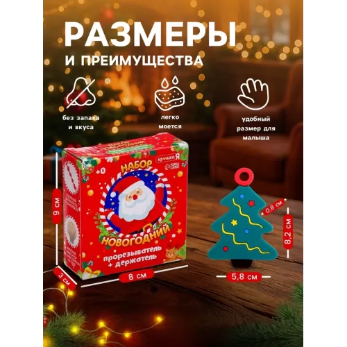 Подарочный набор “Ёлочка” для малышей: новогодний прорезыватель с держателем, цвет зелёный
