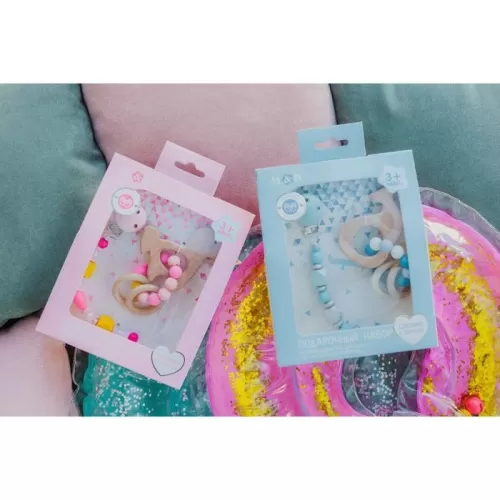 Подарочный набор M&B «Малыш» держатель для соски-пустышки, грызунок-прорезыватель