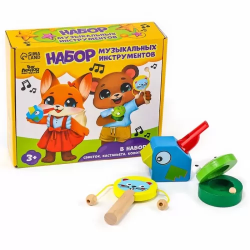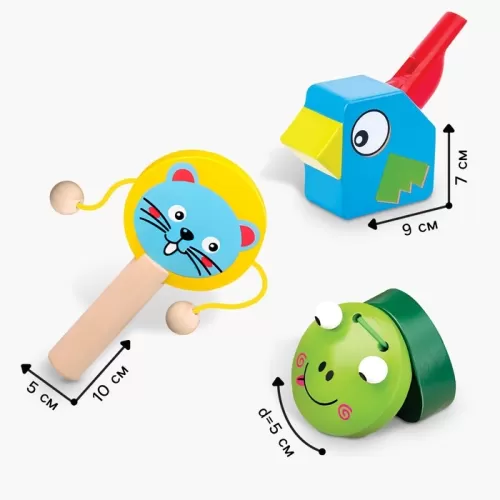 Подарочный набор музыкальных инструментов «Свистулька, кастаньета, колотушка»