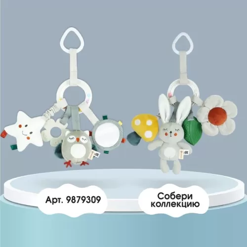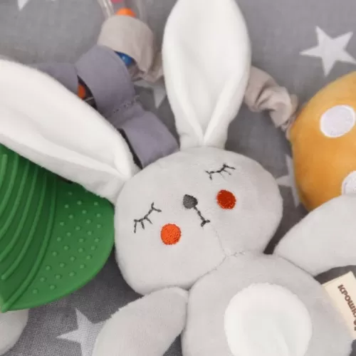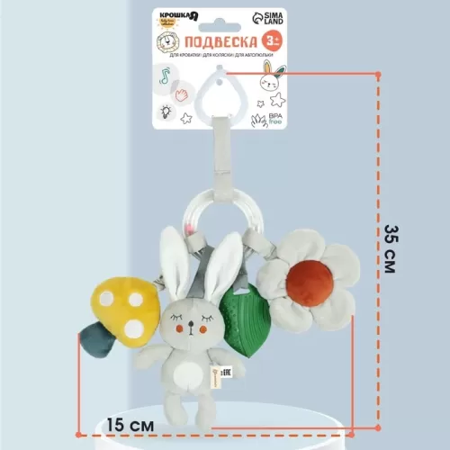 Подвеска - погремушка «Зайка Бонни», прорез, пищалка, шуршалка, на кроватку, коляску, Крошка Я