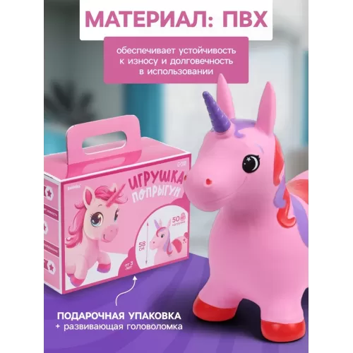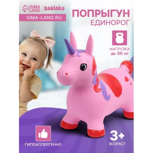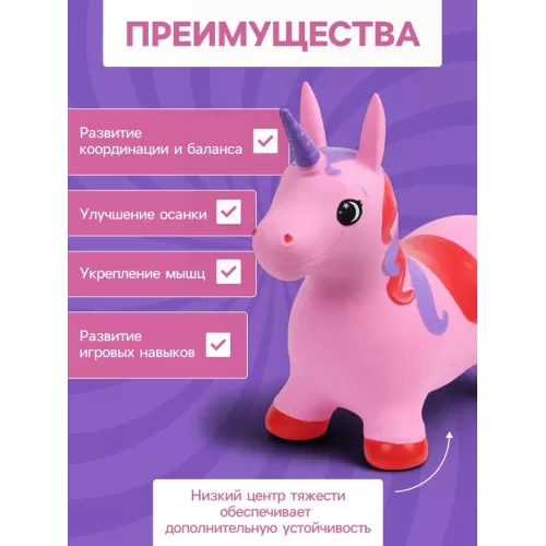 Попрыгун ZABIAKA «Единорог», 51×25×50 см, розовый