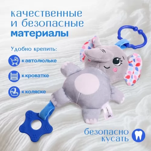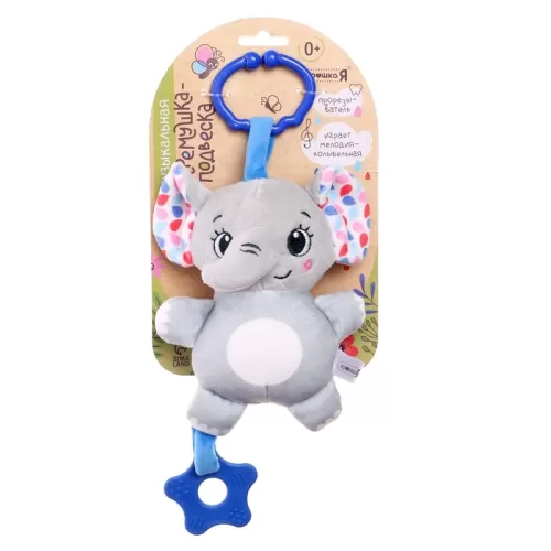Погремушка «Слон», музыкальная, подвесная, цвет серый