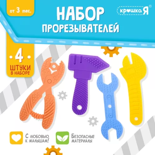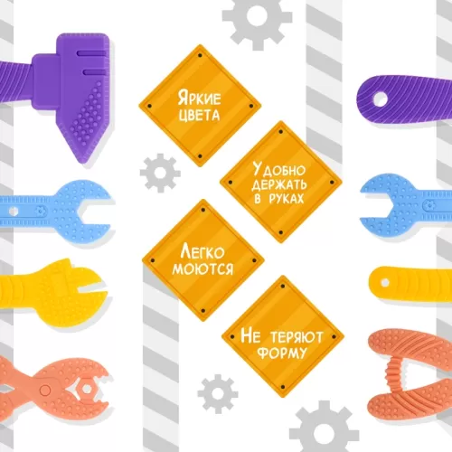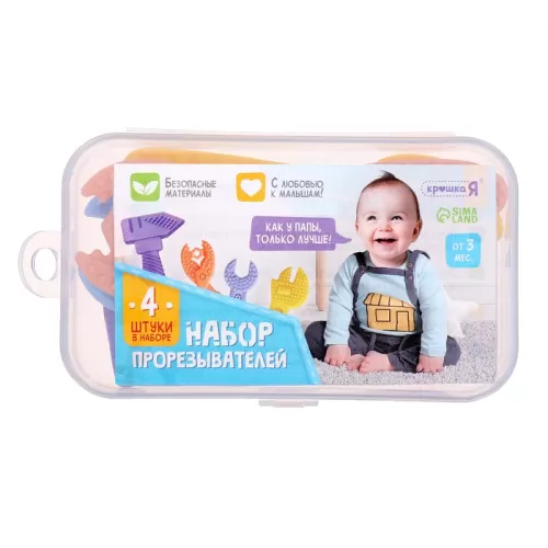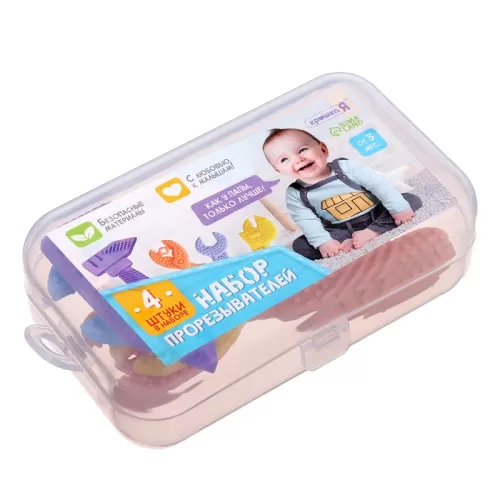 Прорезыватели для зубов «Мои первые инструменты», пищевой силикон, в контейнере, набор 4 шт.