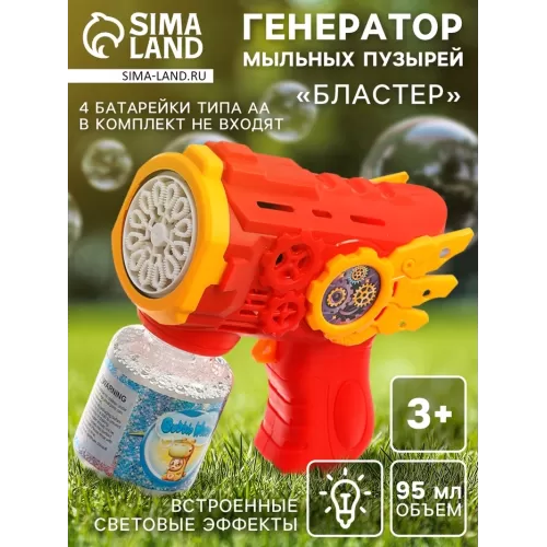 Генератор мыльных пузырей «Бластер», световые эффекты, работает от батареек, цвет красный