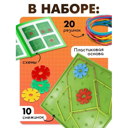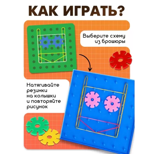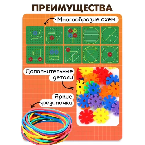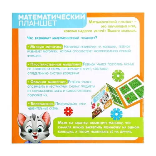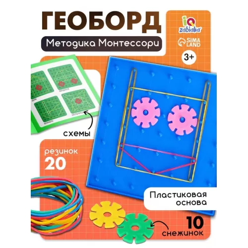 Геоборд «Математический планшет: весёлые картинки» с инструкцией по схемам, цвета МИКС, по методике Монтессори